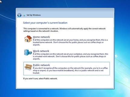 Choose the location your computer is at